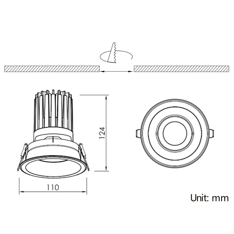 | IBSP104CT095 (H78) | 10W | Ø110mm×H78mm | Ø95mm | Reflector 15°| 24°|38°|45°|60° (Adjustable: horizontal 355°+vertical 30°) |
