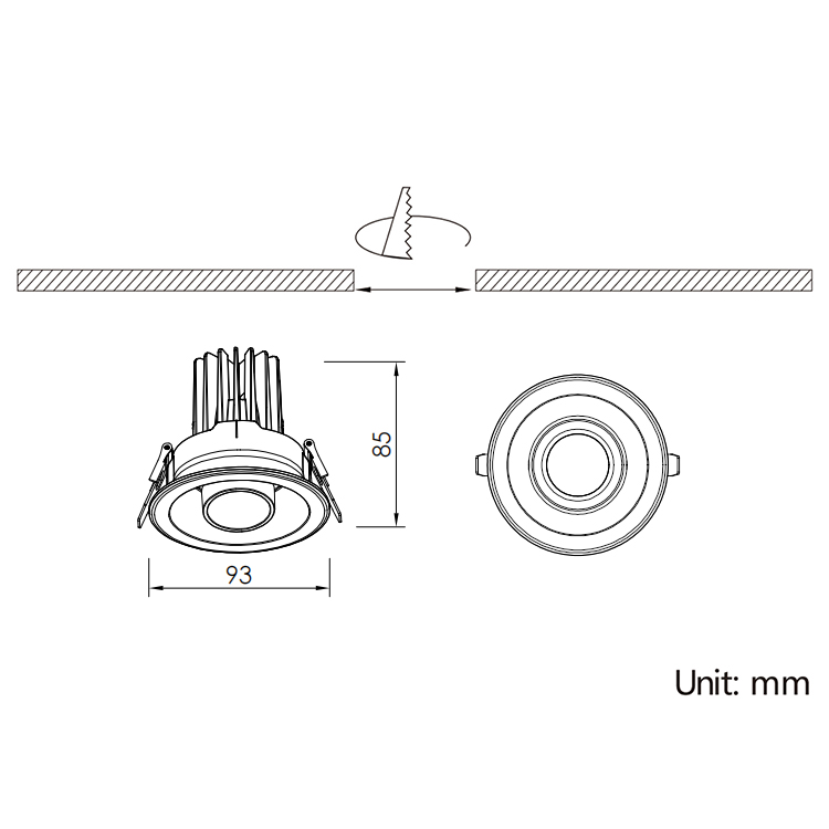 Model No.WattsLamp Outer SizeCutout Hole SizeBeam Angle