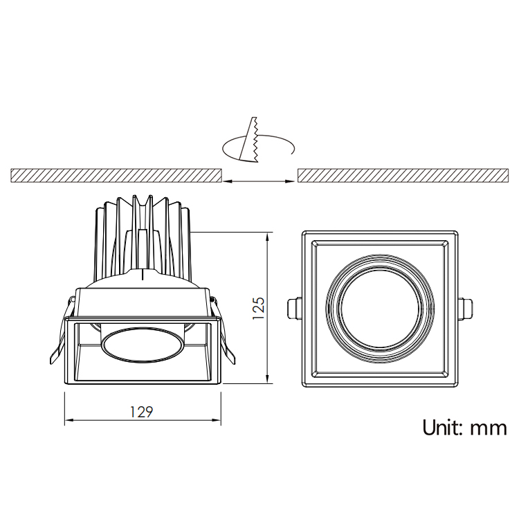 28W,Cutout L120×W120mm,Beam15°/20°/24°/36°/38°/40°/45°/60°,Horizontal 355° + Vertical 30°,IP65,Honeycomb louver Optional,Eyeball Square Adjustable LED Downlight