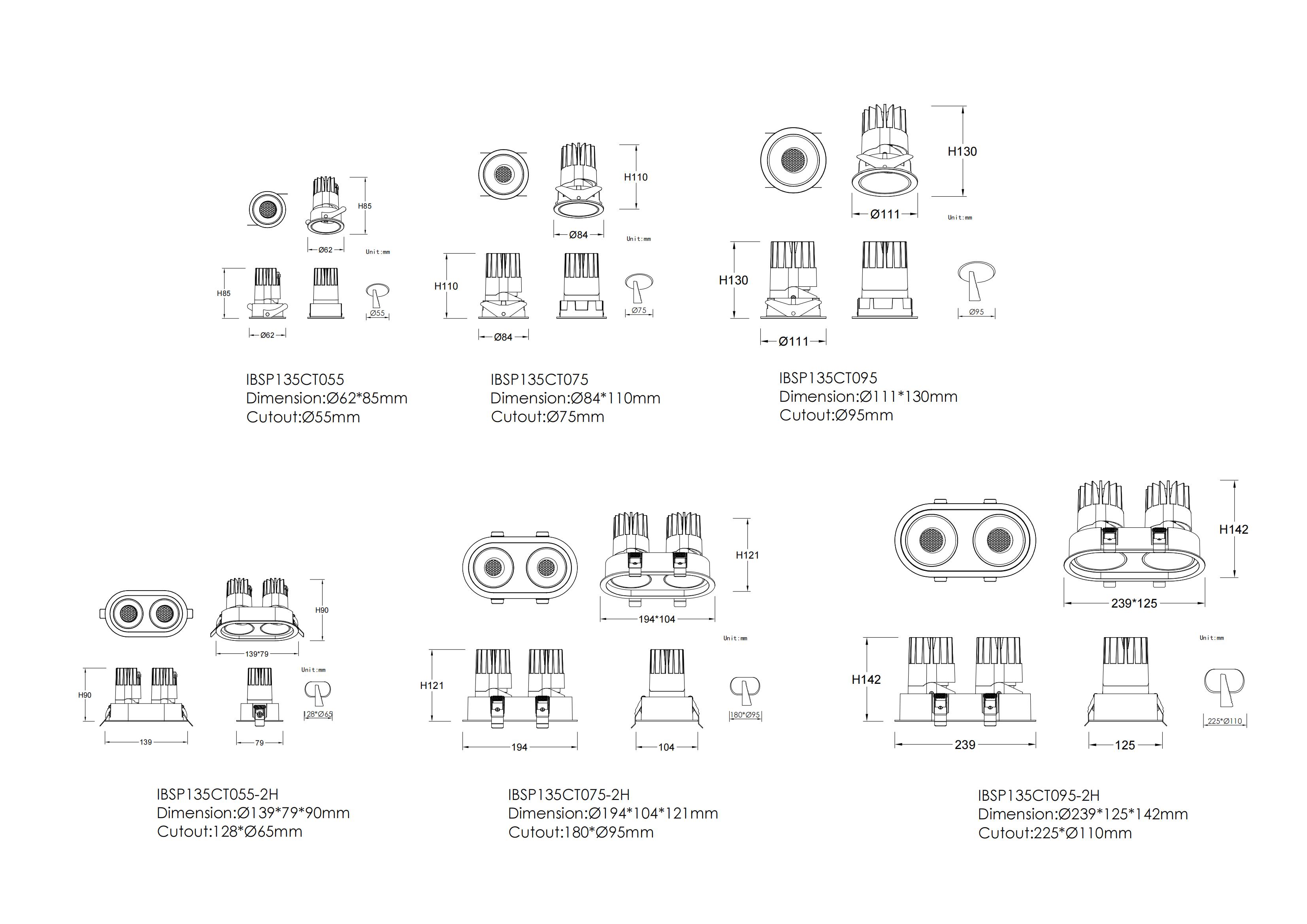 首页 > 产品展示 > LED Downlight Narrow/Medium Beam Series > IBSP135-Adjustable 8-25W