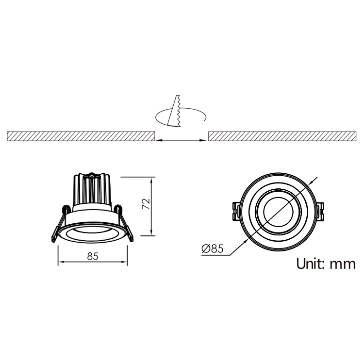 | IBSP151CT075H72 | 8W | Ø85*72mm | Ø75mm | Reflector 20°| 40°|60° Lens 15°| 24°|36°|50° (Adjustable:vertical 30°) |