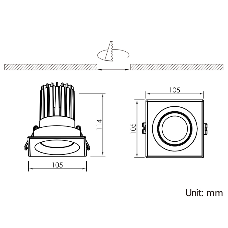 | IBSP151SCT095H114 | 25W | L105*W105*H114mm | L95×W95mm | Reflector 15°| 24°|38°|45°|60° (Adjustable:vertical 30°) |