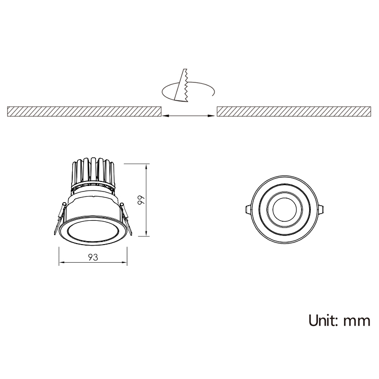 Model No.WattsLamp Outer SizeCutout Hole SizeBeam Angle