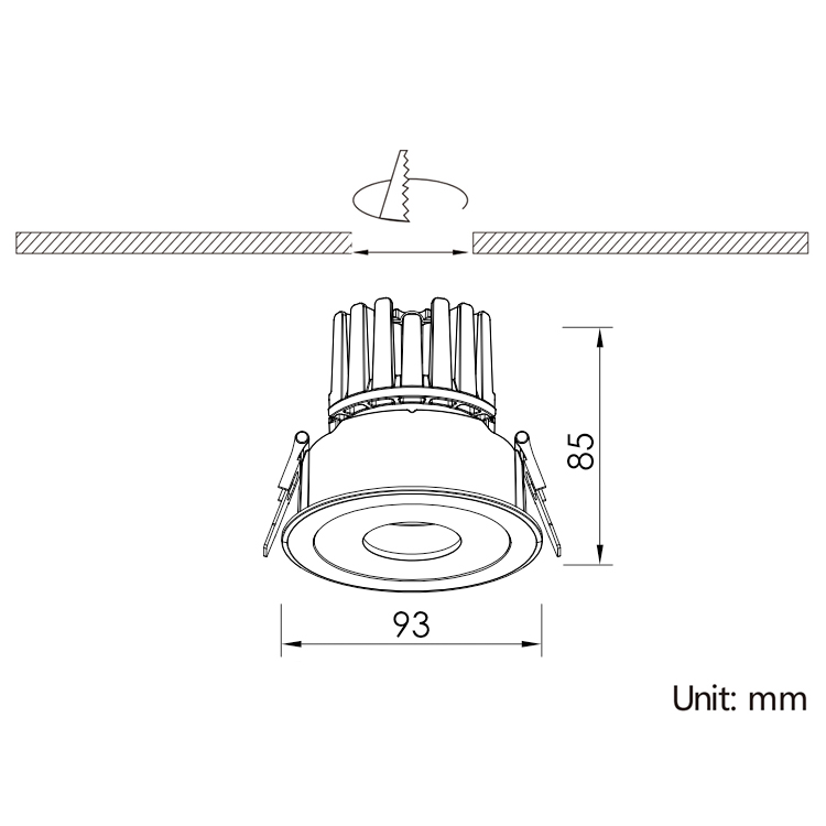 IBSP158CT085H81-PIN (Fixed pin-hole,8W) | 8W | Modular:Ø70*81mm Trim:Ø93*36mm Lamp:Ø93*81mm | Ø85mm | Lens 15°| 24°|36° |