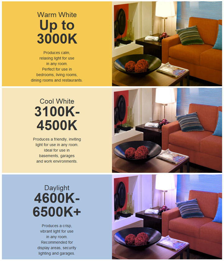 Understanding the color of light, also known as Kelvin temperature (K), can make it easier for you to choose lighting that will give you the effect you want.
