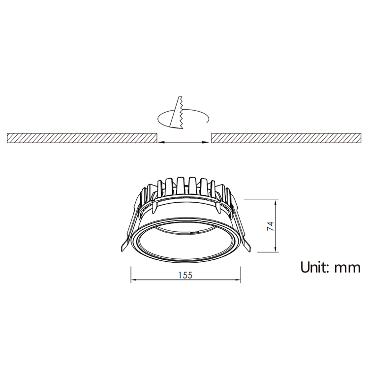 25W,Cutout 140-145mm,Beam 85°,110lm/W,UGR<19,IP20/IP54,Pure Aluminum Reflector,Optional CCT Switch,Deep Trim Recessed LED Downlight