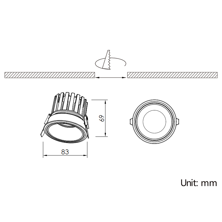 Model No.WattsLamp Outer SizeCutout Hole SizeBeam Angle