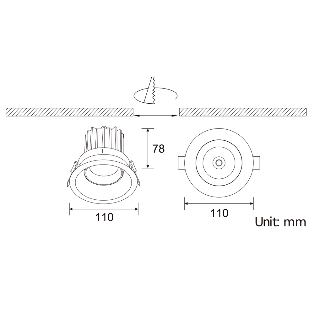 | IBSP104CT095 (H78) | 10W | Ø110mm×H78mm | Ø95mm | Reflector 15°| 24°|38°|45°|60° (Adjustable: horizontal 355°+vertical 30°) |