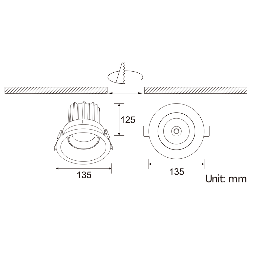 Model No.WattsLamp Outer SizeCutout Hole SizeBeam Angle