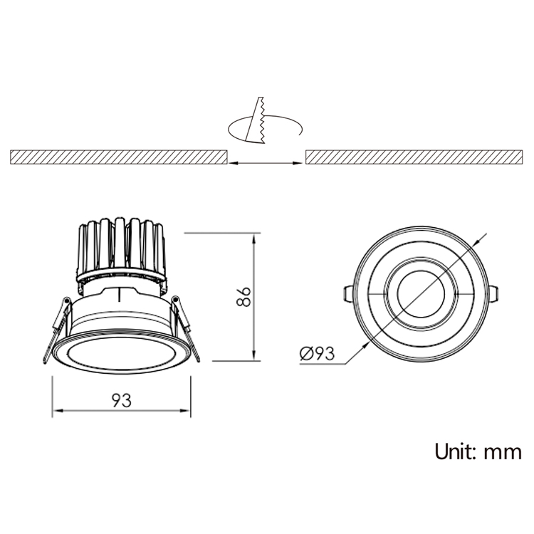 Model No.WattsLamp Outer SizeCutout Hole SizeBeam Angle