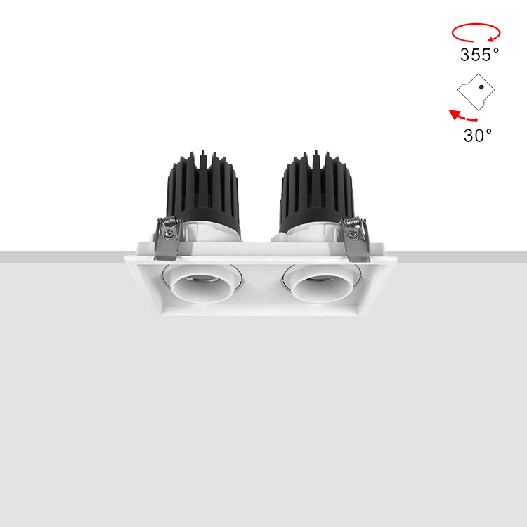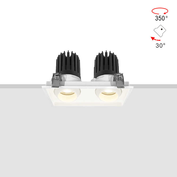 2*25W,Cutout L190×W95mm,Beam15°| 24°|38°|45°|60°,Horizontal 355° + Vertical 30°,IP65,Honeycomb louver Optional,Twin-head Adjustable LED Downlight