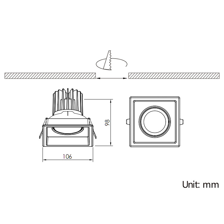 Home > Products > LED Downlight Narrow/Medium Beam Series > IBSP104S-Square-Adjustable 8-40W