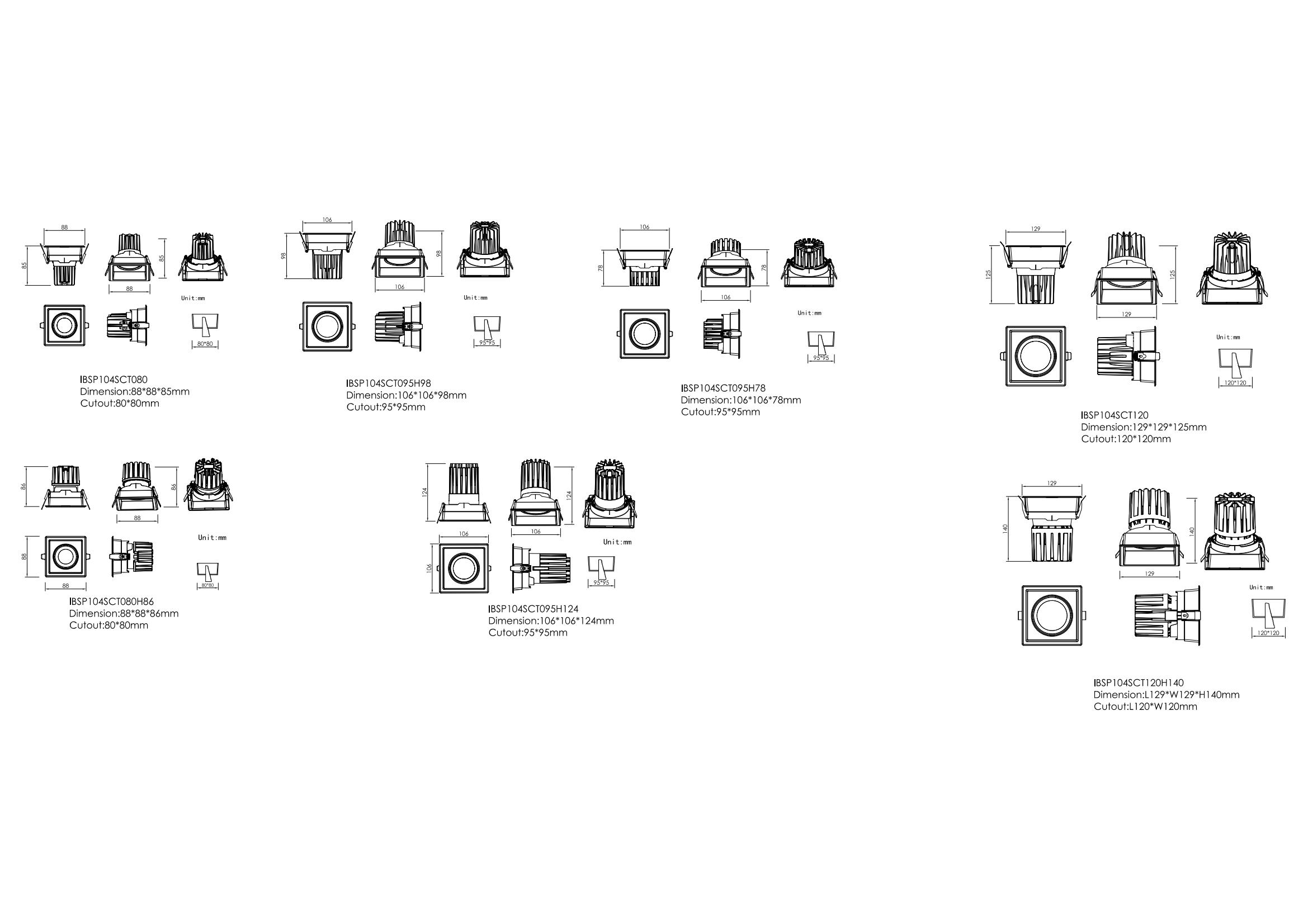 IBSP104SCT095H7810WL106xW106×H78mm L95×W95mmReflector 15°| 24°|38°|45°|60°