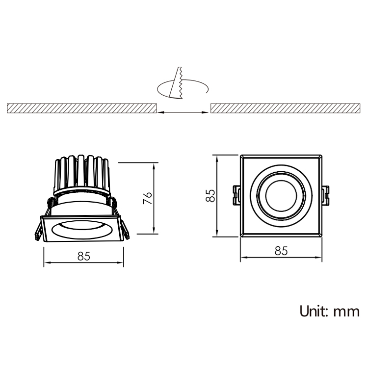 | IBSP151SCT075H76 | 15W | L85*W85*H76mm | L75×W75mm | Reflector 20°| 40°|60° Lens 15°| 24°|36°|50° (Adjustable:vertical 30°) |