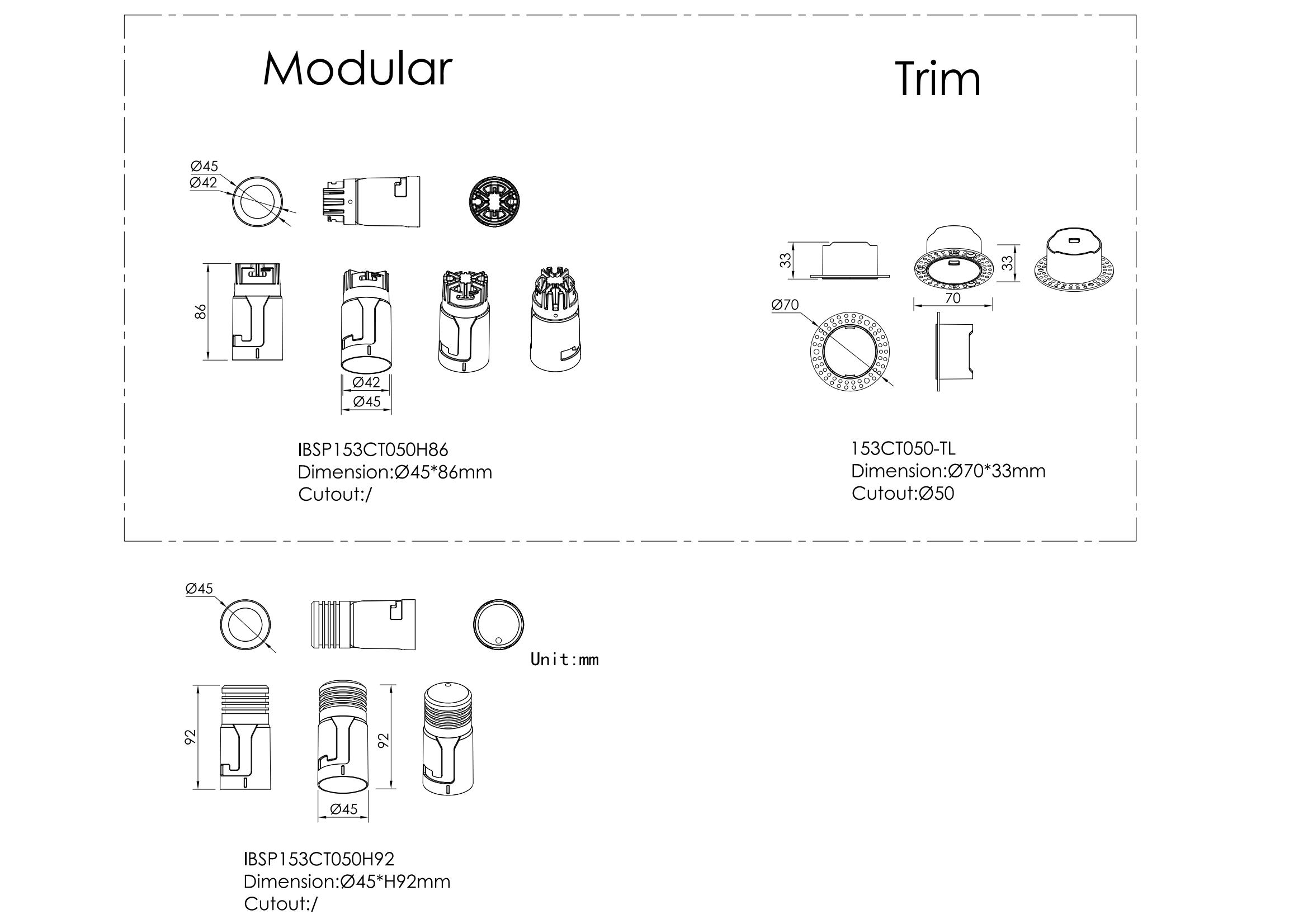 153CT050-TL (Trimless Frame) | 丨 | Ø70*H35mm | Ø50mm | Trimless frame for IBSP153 |