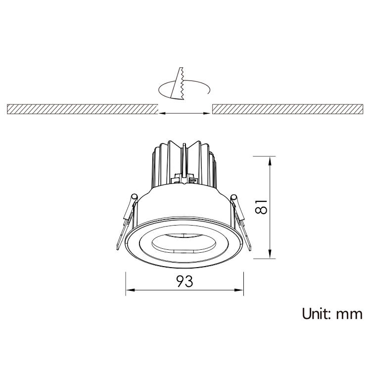 Model No.WattsLamp Outer SizeCutout Hole SizeBeam Angle